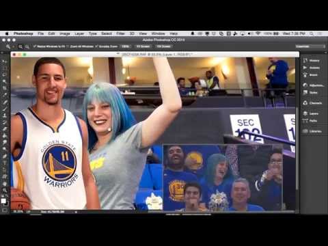 The video above was the Photoshop Fan Cam at a game back in April 2015, when Adobe was celebrating 25 years of Photoshop. A retoucher put a fan’s head on a dunking player and replaced another fan with a Golden State Warrior.
